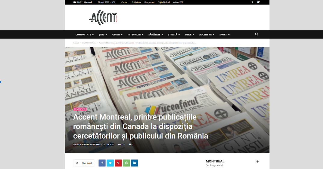 Iată ce scrie „Accent Montreal” în ediția sa print din 20 mai 2022, pagina 3 și pe internet.