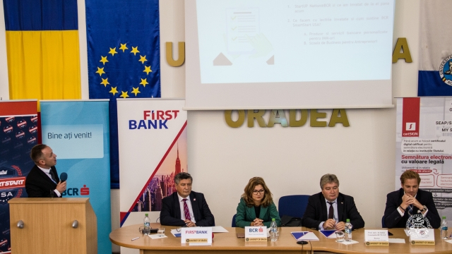 La conferință au participat reprezentanți ai băncilor partenere, ai mediului academic de afaceri, studenți și cadre didactice.