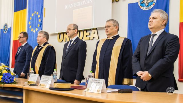 Din partea Universității din Oradea au făcut parte din prezidiu rectorul prof.univ.dr.habil. Constantin Bungău, prof.univ.dr.habil. Radu Țarcă, directorul Consiliului pentru Studiile Universitare de Doctorat și prof.univ.dr.habil. Sorin Șipoș, director al Şcolii Doctorale de Istorie. Moderatorul manifestării a fost conf.univ.dr. Aurel Căuș, președintele Senatului Universității din Oradea.