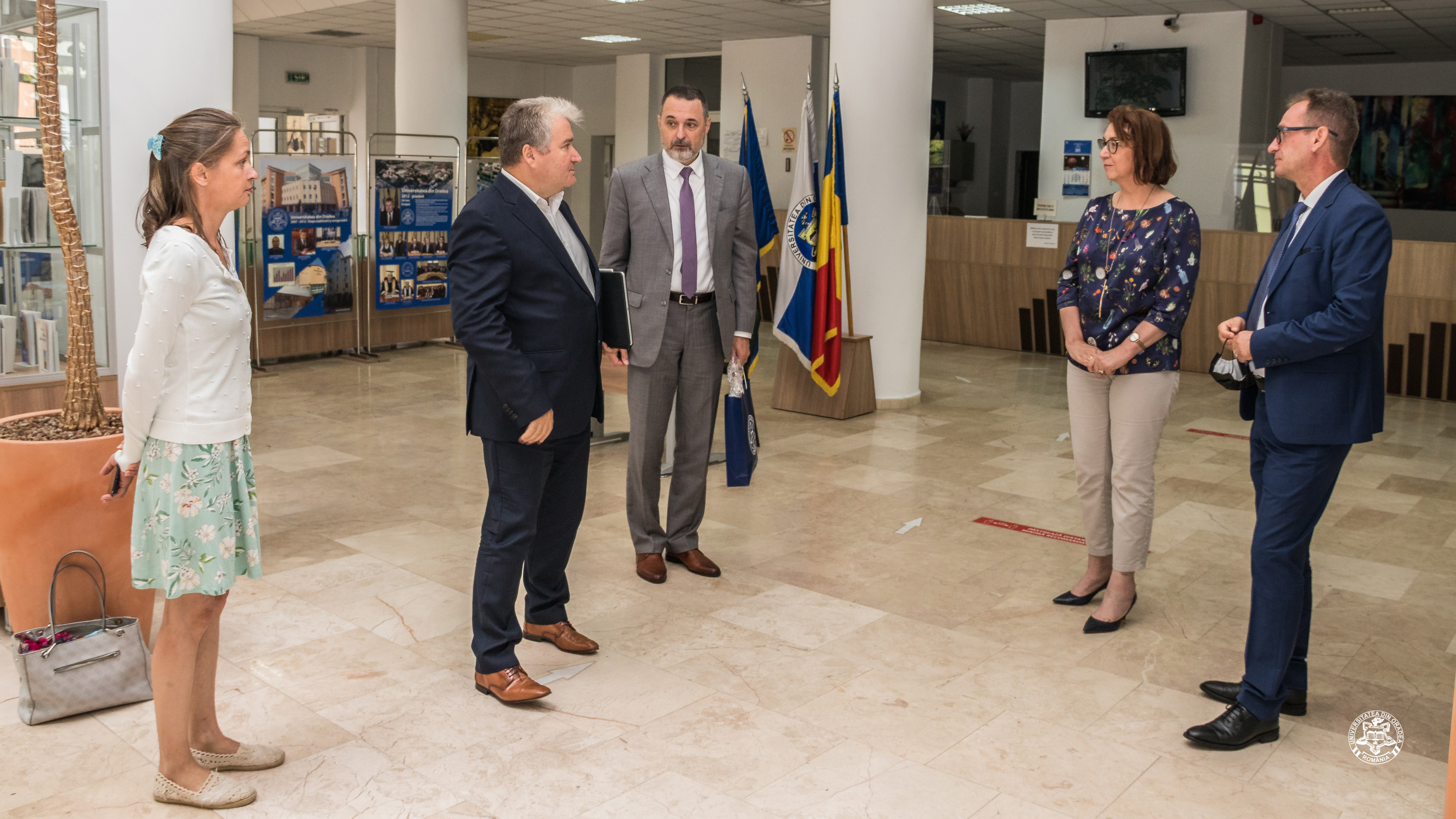 Acestea au fost cuvintele cu care rectorul Universității din Oradea, prof. univ. dr. habil. Constantin Bungău, a punctat scurta prezentare pe care a făcut-o instituției. „Nu suntem o universitate mică. Suntem între primele zece din țară. Avem circa 14.000 de studenți, aproape 20.000 dacă îi punem la socoteală și pe rezidenți, masteranzi, pe cei de la studiile post-universitare pedagogice, doctorat... Acoperim aproape toate domeniile de studiu și, după numărul de specializări, suntem între primele trei universități ale României”. Rectorul Universității din Oradea a mai adăugat că, în acest an, bugetul burselor „Erasmus”, destinate mobilității studenților și a cadrelor didactice, se apropie de 1.200.000 euro.