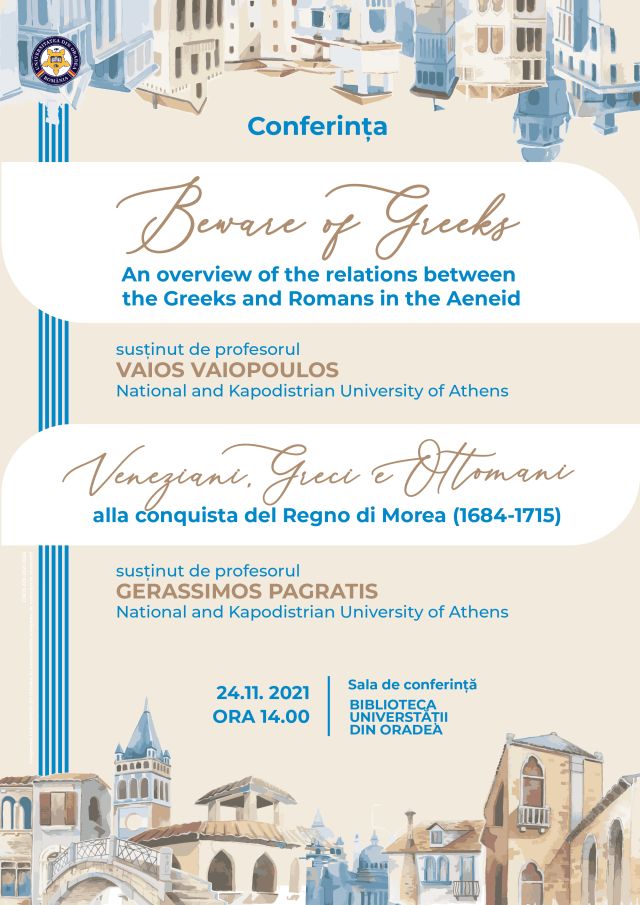 La rândul său, profesorul Gerassimos Pagratis, și el de la aceeași prestigioasă universitate ateniană, va prezenta conferința „Venețieni, greci și otomani în timpul regatului din Morea – 1684-1715”.