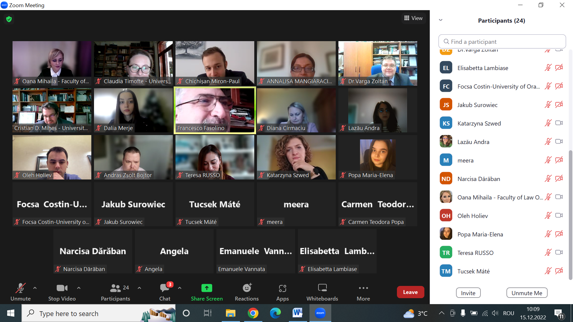 Co-organizatorii acestui eveniment sunt: Facultățile de Drept din Debrecen, Miskolc și Szeged (Ungaria), Facultatea de Drept din cadrul Universității Ivan Franko din Lviv (Ucraina), Departamentul Drept din cadrul Universității Palermo (Italia), Facultatea de Drept și Științe Politice din cadrul Universității Reims Champagne-Ardenne (Franța), Departamentul de Științe Juridice din cadrul Universității Salerno (Italia).
