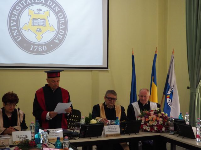 Domnul Președinte al Senatului Universității din Oradea a confirmat faptul că emoțiile trec de la unii la alții și că se simte onorat să fie prezent la un astfel de eveniment excepțional.