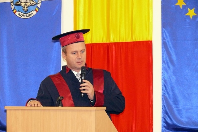 Laudatio a fost citit de către directorul de departament Ingineria Mediului, prof.univ.dr. Cornel Domuţa, după care i s-a înmânat domnului prof.univ.dr.ing. Ioan Vasile Abrudan diploma de Doctor Honoris Causa al Universității din Oradea.