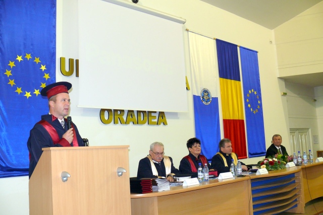Ceremonia a fost deschisă de către decanul Facultăţii de Protecţia Mediului, prof.univ.dr. Ioan Chereji, după care au luat cuvântul rectorul Universității din Oradea, prof.univ.dr. Constantin Bungău, şi președintele Comisiei de Relaţii Academice, Internaţionale şi Interne, prof.univ.dr. Lia Pop.