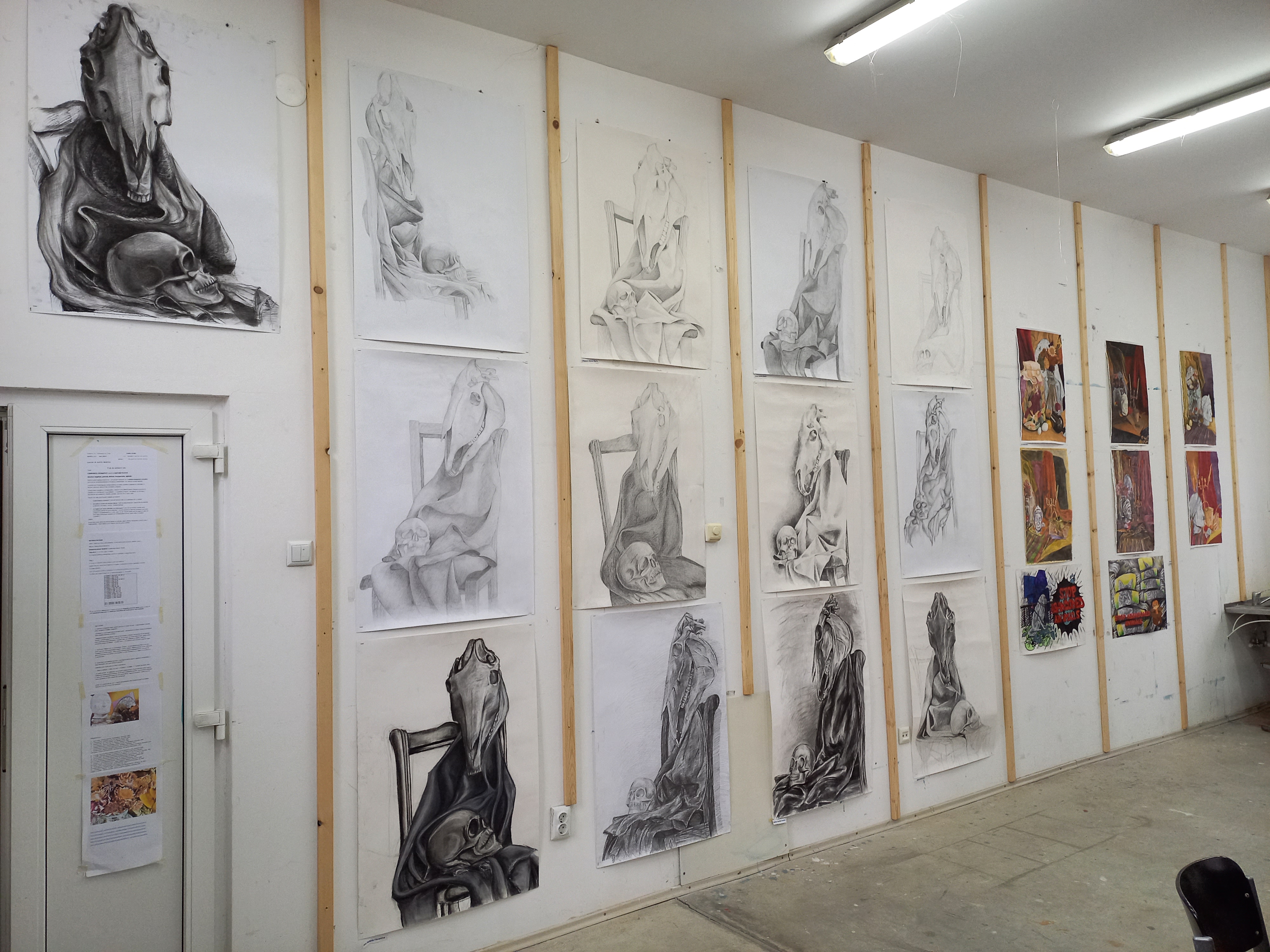 Și de această dată, expoziția a fost gândită sub forma unor ateliere deschise. Publicul interesat fiind invitat să profite de vacanța inter-semestrială a studenților pentru a admira lucrările viitorilor artiști.