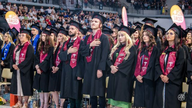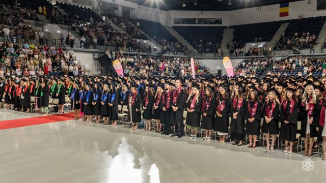 Ținute lejere sau fistichii, togi și tichii, sute de studenți au pășit pe covorul roșu, ocupând jumătate din spațiul de joc al arenei sportive. Toți au fost emoționați, încrezători, plini de speranțe. Toți sunt de acum medici și cadre tehnice medicale.