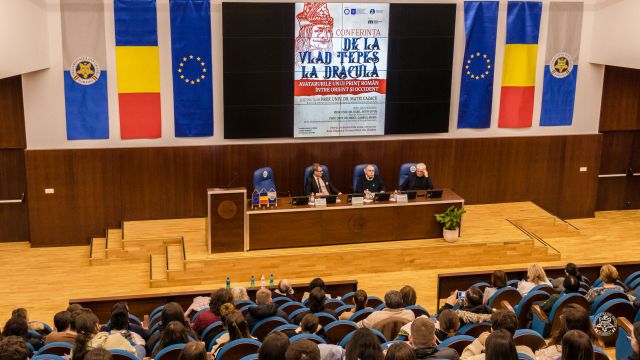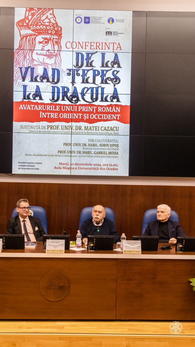 Conferința susținută de prof. Matei Cazacu, marți – 10 decembrie 2024, în Aula Magna a Universității din Oradea, a purtat titlul: „De la Vlad Țepeș la Dracula – avatarurile unui prinț român între Orient și Occident”.