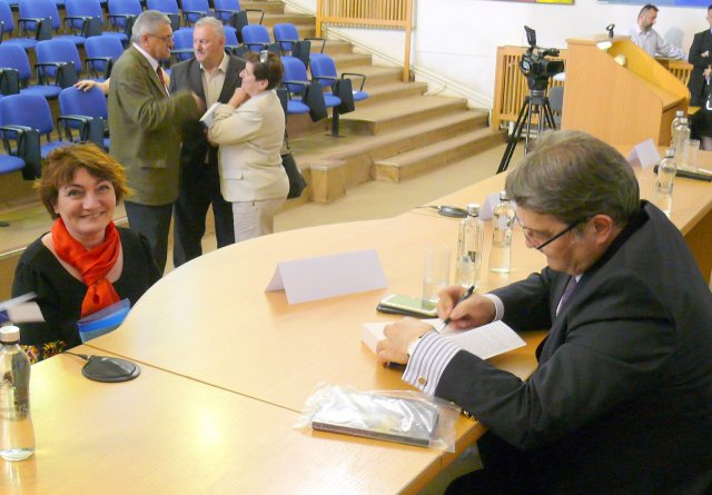 La lansarea cărţii au luat cuvântul prof.univ.dr. Constantin Bungău, rector al Universităţii din Oradea, prof.univ.dr. Mircea Morariu de la Facultatea de Litere, conf.univ.dr. Cristina Matiuţa şi ambasadorul României în Germania, fost jurnalist al Europei Libere, Emil Hurezeanu.